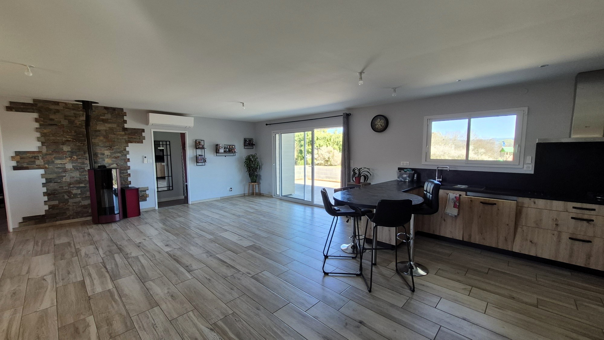 Située sur la commune de Hauterive, dans un cadre champêtre, cette maison à ossature bois a été construite en 2020 et se trouve en parfait état. Elle offre une surface habitable de 122 m² sur un terrain de 3000 m², dans un environnement calme et verdoyant. L'intérieur se compose d'un vaste séjour de 56 m² avec une belle cuisine américaine aménagée et équipée, ainsi qu'une baie vitrée donnant sur une terrasse de 60 m². La suite parentale comprend une chambre de 16 m² avec accès à la terrasse par baie vitrée, ainsi qu’une salle de bains privative avec WC. Deux autres chambres de 11 m² et 12 m², une salle d’eau avec WC et une buanderie viennent compléter l’ensemble. Portail automatisé, volets centralisés, prise pour recharge de véhicule électrique et cuve de récupération d’eau de pluie de 3000 litres. Chauffage par climatisation réversible et poêle à granules. DPE réalisé le 04/12/2025, B (90), estimation des coûts annuels d’énergie comprise entre 900€ et 1280€ pour un usage standard (abonnements compris, prix moyens des énergies sur les années 2021, 2022 et 2023), GES : A (2). 260 000€ HAI – 250 000€ net vendeur soit 4% TTC d’honoraires charges acquéreurs. Les informations sur les risques auxquels ce bien est exposé sont disponibles sur le site Géorisques : www.georisques.gouv.fr