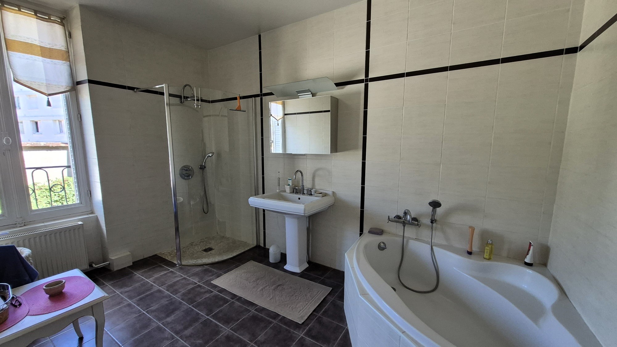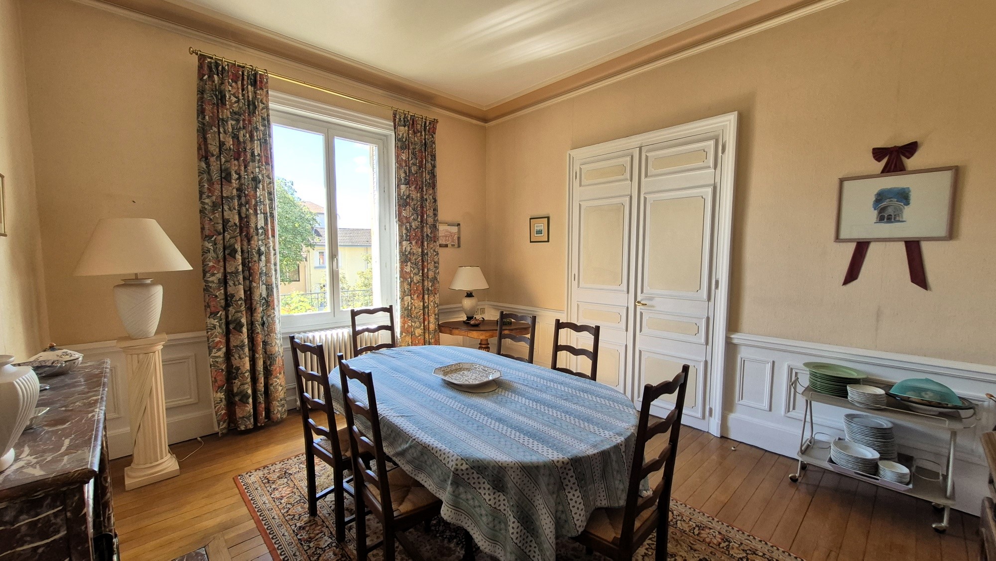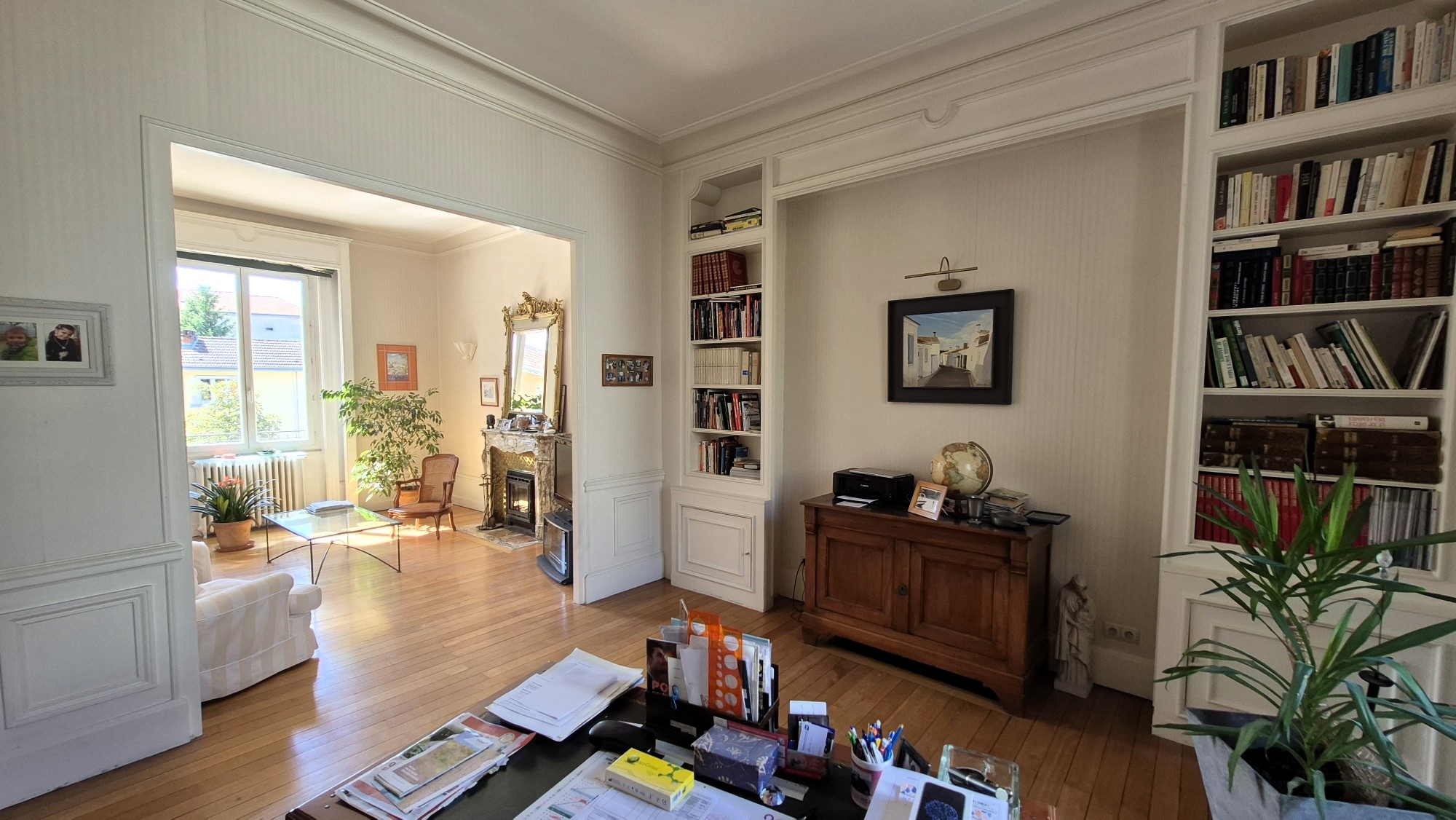 Vichy, maison de caractère dans un très bon état général (façade arrière rénovée il y a 3 ans, étanchéité terrasse refaite, décoration soignée…). 242m² habitables avec terrasse à l’avant et cour végétalisée à l’arrière d’environ 80m² avec un accès direct de plain-pied depuis la maison. Parquet, cheminée, belles hauteurs sous plafonds. Vaste entrée de 10m² avec carreaux de ciment, double séjour traversant de 37m² avec insert (hauteur sous plafond de 3.40m), salle à manger de 20m², cuisine aménagée/équipée. Au 1er étage: 3 vastes chambres (17.50m², 18.50m² et 20m²), salle de bains avec baignoire d’angle et douche, WC avec fenêtre. Au 2nd: 3 chambres (14.50m², 14.50m et 16m²), salle d’eau avec WC sanibroyeur, une pièce « débarras » à l’heure actuelle aménageable en chambre ou bureau. Au sous sol: chaufferie, pièce de rangement, cave, WC. Garage 2 véhicules en enfilade avec porte automatisée. Assainissement conforme. Chauffage fioul, DPE réalisé le 30/09/2024, E (248) / GES: E (56), estimation des coûts annuels d’énergie comprise entre 6120€ et 8360€ pour un usage standard, prix moyens des énergies indexés sur les années 2021, 2022 et 2023 (abonnements compris). 367 000€ HAI – 350 000€ net vendeur soit 4.85% TTC d’honoraires charges acquéreurs. Les informations sur les risques auxquels ce bien est exposé sont disponibles sur le site www.georisques.gouv.fr